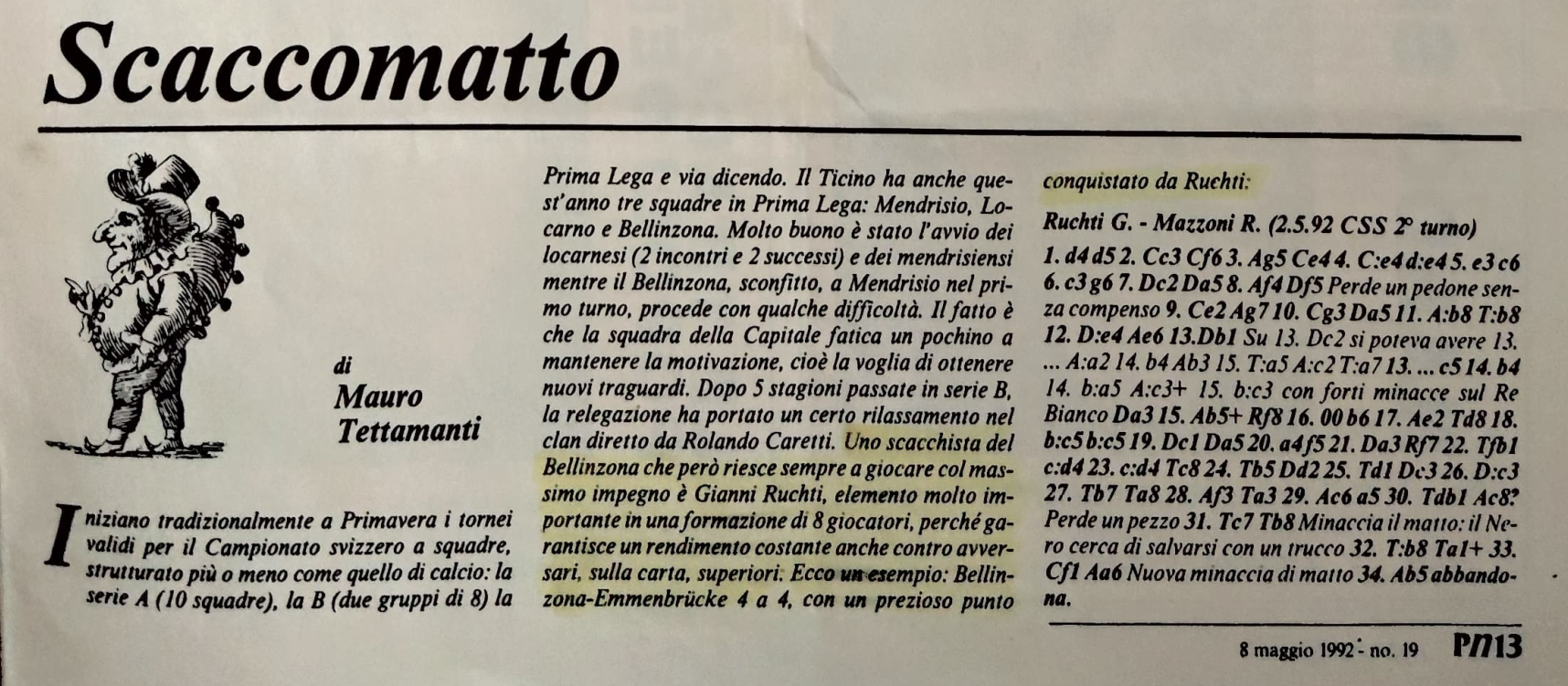 In questa sezione sono presenti pezzi di storia degli scacchi della Svizzera italiana. Aprite le immagini per visualizzare gli articoli pubblicati e i materiali d’archivio.